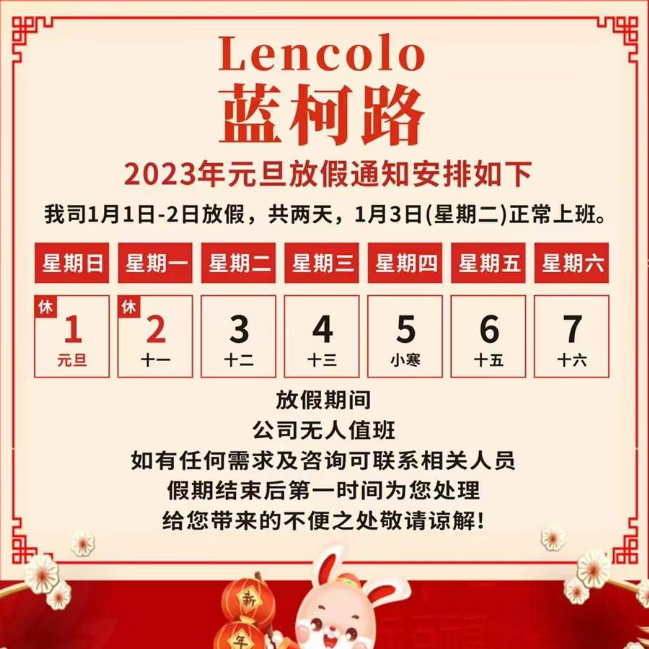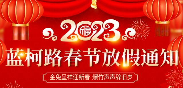 2023年春節(jié)即將到來(lái),根據(jù)國(guó)務(wù)院辦公廳發(fā)出的關(guān)于2023年春節(jié)假期安排的通知,結(jié)合我司運(yùn)作情況,現(xiàn)將2023年春節(jié)放假安排如下:春節(jié)放假時(shí)間:2023年1月15日-1月29日,共計(jì)15天。1月30日(初九)正常上班。